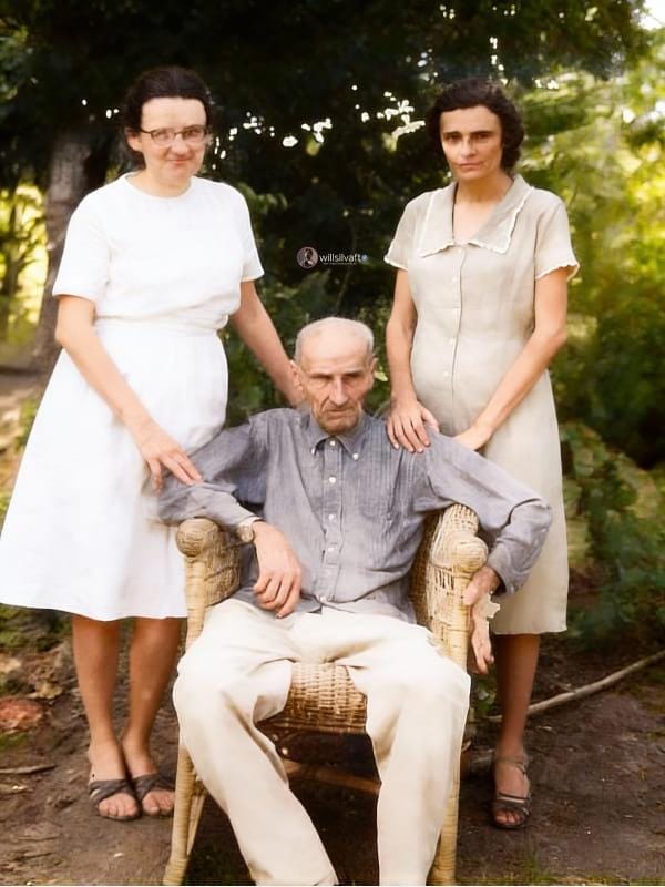 Francisco Cunha ao meio. / Lado direito  Albertina (Bebé) / Lado esquerdo, Raimunda (Didi ou Didita). Era meu bisavô.