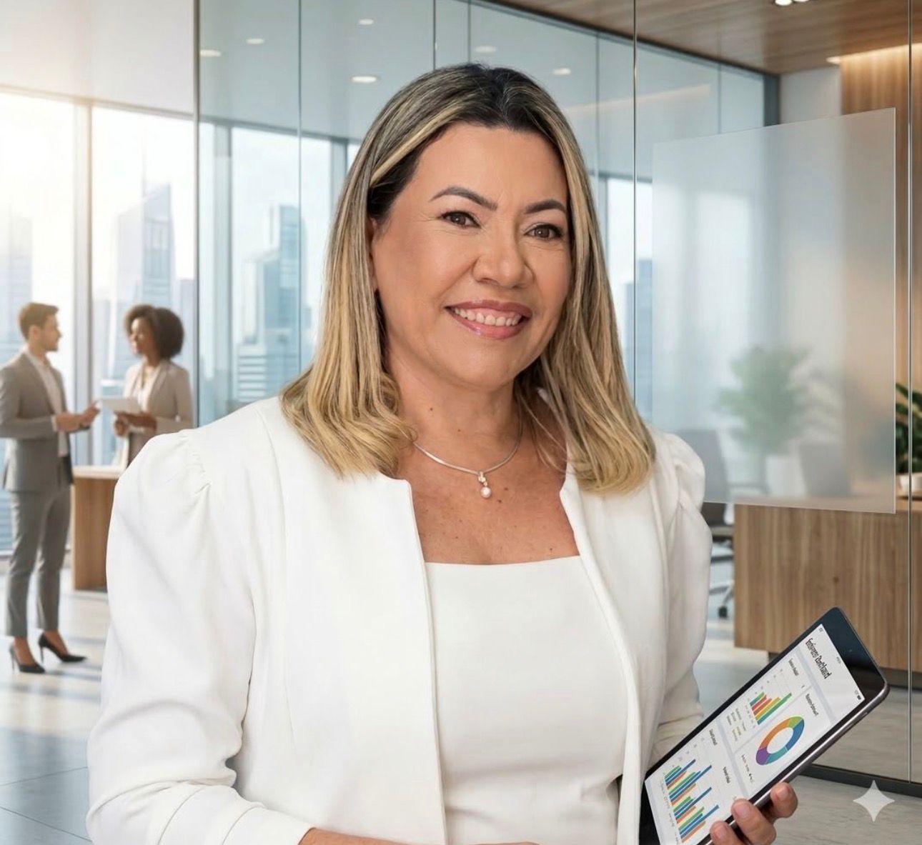 Empresária do ramo hoteleiro, vereadora de 4 mandatos, foi presidente da Câmara.